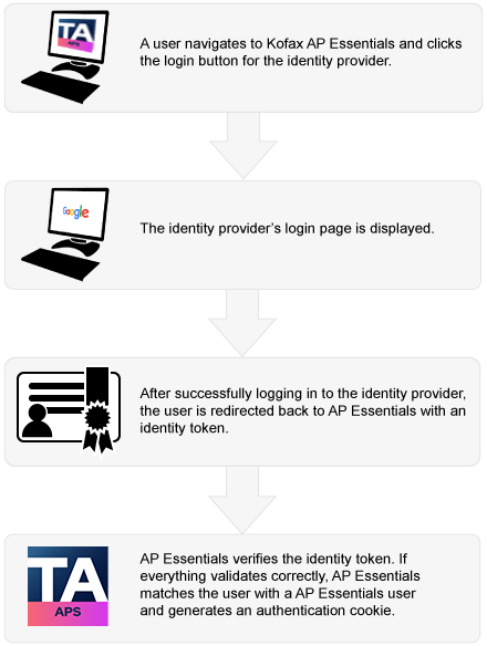 AP Essentials maps the User name to the email address of the identity provider credentials. In other words, your AP Essentials user name must match the email that you use to login to the identity provider. When logging in via the identity provider, you must complete the login within 30 minutes from the time the login page is displayed.