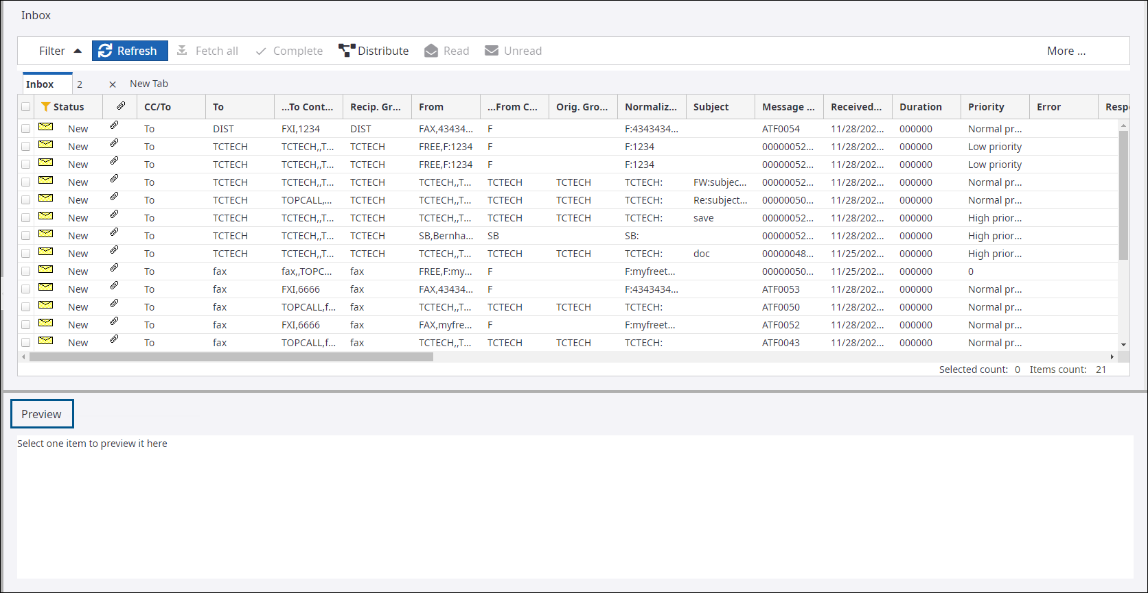 Use this feature to preview a message without opening it. From the Preview pane, you can upload attachments, configure send options, and send the message. You can drag the Preview pane from the bottom or right side of the folder window.