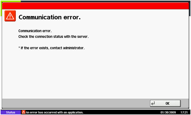 - Exit the communication error screen by pressing the OK button