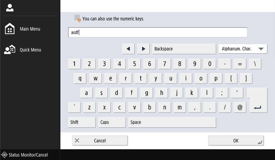 right side of the input area. Text can be entered using the Canon soft keyboard after