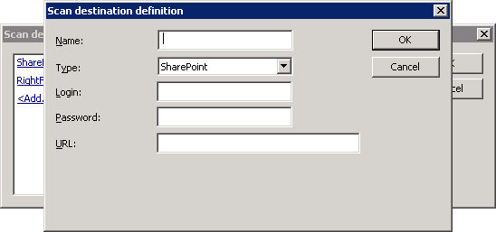 The Capture and Send feature enables the Samsung Smart UX to scan documents to a network folder on the web via SharePoint, a telephone fax number via RightFax, network folders on your local area network, and email through your server. You require a Capture and Send license per device to enable the functions. In the case of SharePoint and RightFax, there must be as many SharePoint or RightFax destinations as there are SharePoint or RightFax servers (one destination per server). For example, if each department has a SharePoint server, each one must be added as a valid Scan Destination. In the case of network folders and email addresses, you can set up scan aliases. For information on scan aliases, see the Equitrac Office or Equitrac Express Administration Guide.