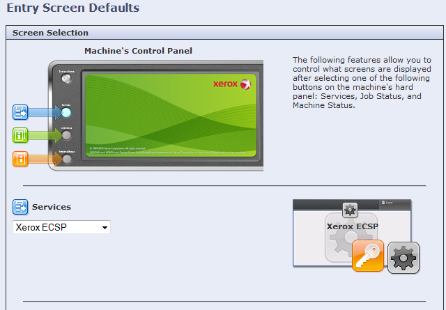 You must configure the device to display the Xerox ECSP options upon login. Follow