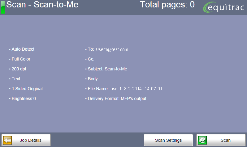 Detailed information on setting up Scan Workflows is found in the Equitrac Help.