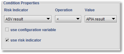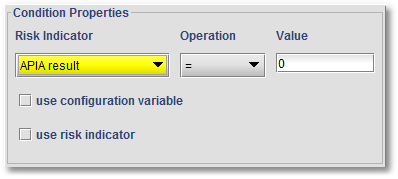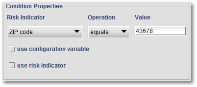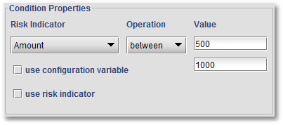 Condition Details are displayed if a condition node is chosen in the tree. The user can choose a risk indicator for evaluation and can specify the match criteria by setting operator and range of the match operation.
