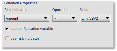 It is also possible to specify a further risk indicator in an operand for a condition in an operand. To do this, the check box ‘use risk indicator’ must be checked. If it is checked, the client displays a drop-down box for each available operand where the user can select an existing risk indicator.
