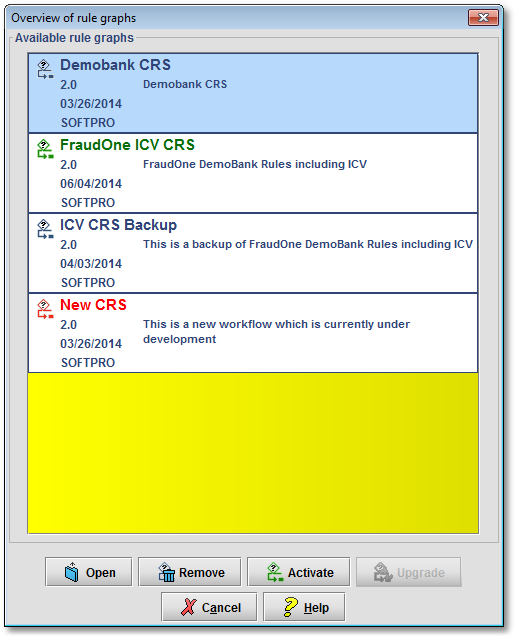 In the Overview of rule graphs dialog, the user can maintain all rule graphs that are stored in the database.