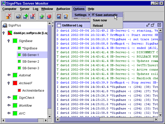The last thing to do is closing the Server Monitor (via menus or toolbar button). Before we do that however, we’ll have a look at the ‘save’ feature.