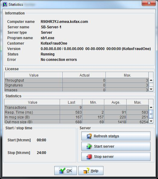 | License | License information for this server: SignCheck throughput, number of signatures and account images. |