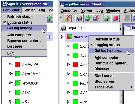 If you’re interested in older information recorded before you turned logging on, you can request this information from the computer by using the Computer > Get log history menu. You can also use the popup menu to do so.