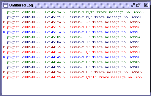 You can display only selected information in each log window by configuring a filter for it (see Using filters). Thus you can, for instance, display all database error messages in one window, or group all messages for a specific task in another.