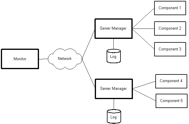 Log information is sent from the component to the Server Manager, which records this in a log file and sends it to any Monitor(s) where logging is enabled. The amount of information provided by the components is configurable and can be changed using the Server Monitor (see Logging, Viewing log information and Verifying the log).