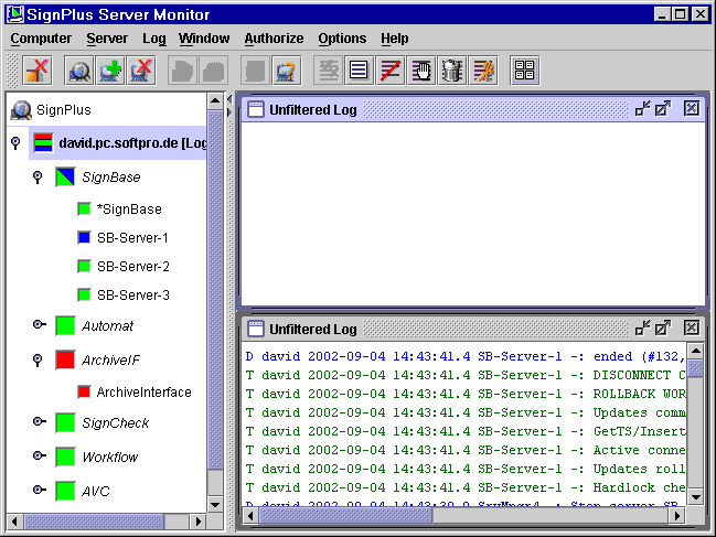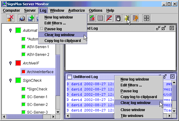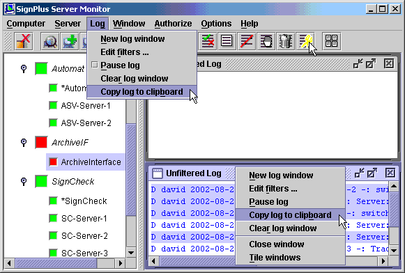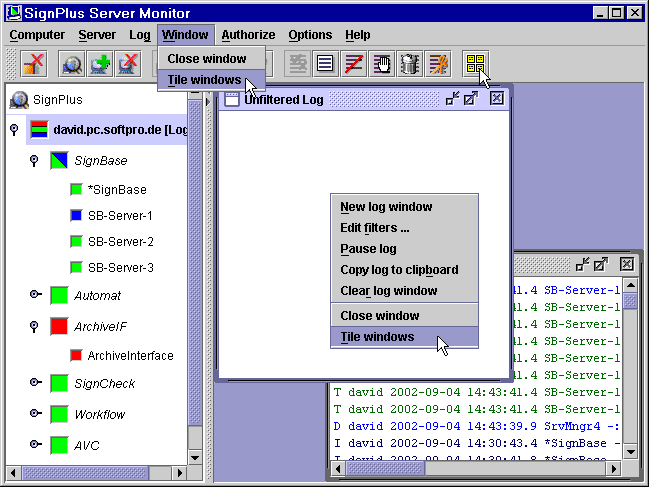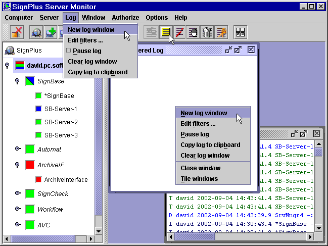As mentioned before, log information from enabled computers is sent to the Server Monitor and passed to all log windows on the right. Try to create a new log window: