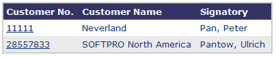 It’s principally possible to fill in only parts of names in the customer name and signatory last and first name fields, but wildcards (*, ?) are not allowed. Also, the search procedure is not case sensitive.
