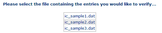 The first view after choosing Phys. Verification loads a list of files containing the reference data for the checks. The system administrator specifies from which data server.