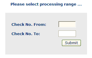 After choosing a file, a new view is loaded, where you must specify on which range of check numbers (from … to) is to be worked. If the "To"-number is smaller than the "From"-number, both will be permuted against each other. If only one number is filled in, only the check with this number is displayed.
