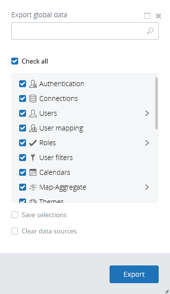Use this option to export Admin Console objects, themes and formats in a file. You may need it, for example, when you create a new server and a new Admin database and you need to transfer the administrator objects.