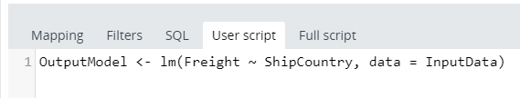InputData in this script is the data frame with three columns that are mapped on Mapping: Freight, OrderDate, and ShipCountry. In the example, only Freight and ShipCountry are used.