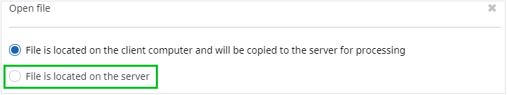 is selected, when attempting to upload a file, you are immediately directed to browse the directory on your computer, without an option of searching on the server.