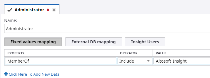To open the Administrator role, select , expand Roles, and then click Administrator. This is the default Administrator role.