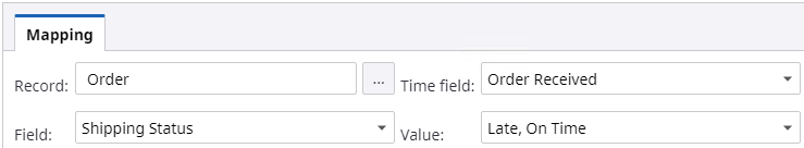 You see the record’s fields on the left, and on the right you see the ProcessID fields and any custom process fields you create. If other fields exist in the record you want to use in the process, such as for a dimension, create a process property (it appears on the list on the right) and map the record field to the process property.