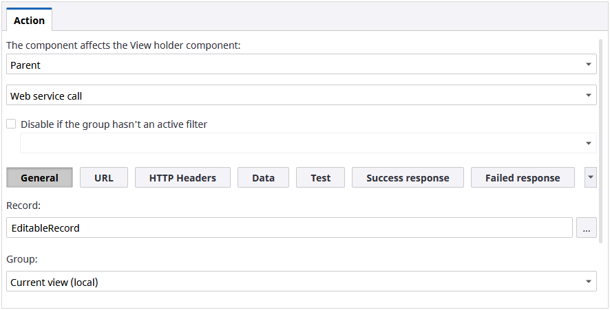 - To set up a web service call, open the Actions wizard for an actionable component and select Web service call as an action.
