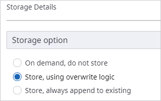 The Storage details dialog box appears. Select Store, using overwrite logic and click OK.