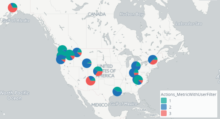 You can add a special chart layer to the map to show pie charts or bar charts on the map. This chart pin layer is similar