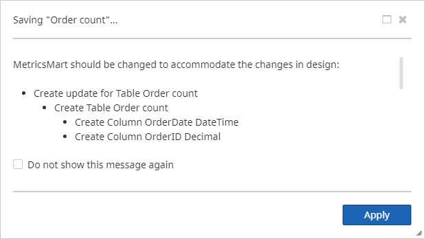 Save your metric. The following dialog box appears on the