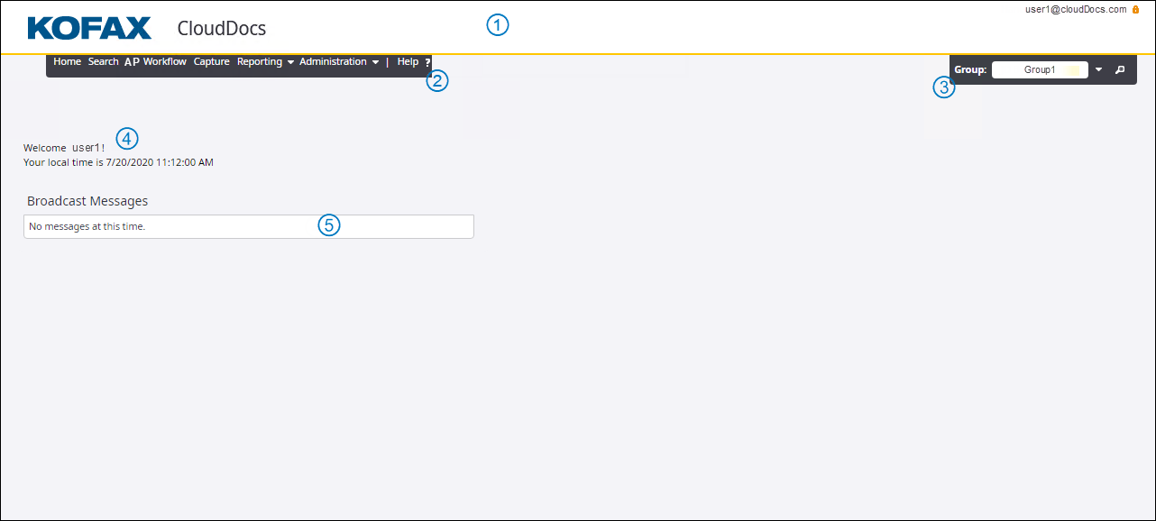 4. User information A banner that displays the user information such as name, organization, and application version.