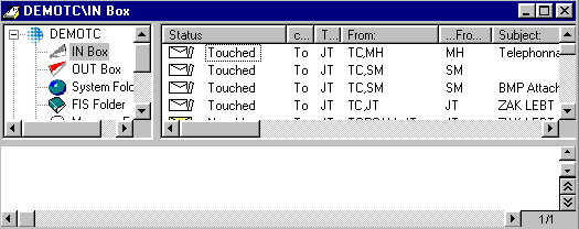 The Inbox shows all your incoming messages. Messages can be categorized as New Message, Touched or Marked Completed, as shown by their corresponding status icons.