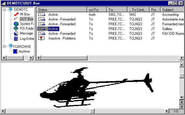 The Outbox shows all messages you sent. For each recipient of a message, one entry line is created in the Outbox. This entry shows, among other things, the Status of delivery. Entries can be categorized as Active, Inactive, or Marked Completed. Active means the message is in process of being sent. Inactive means the message couldn't be sent due to problems. Marked Completed include messages sent successfully as well as those cancelled by the user.