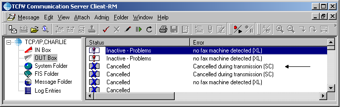 The status of messages in the Outbox, which are cancelled during transmission, are displayed with: (See Status)
