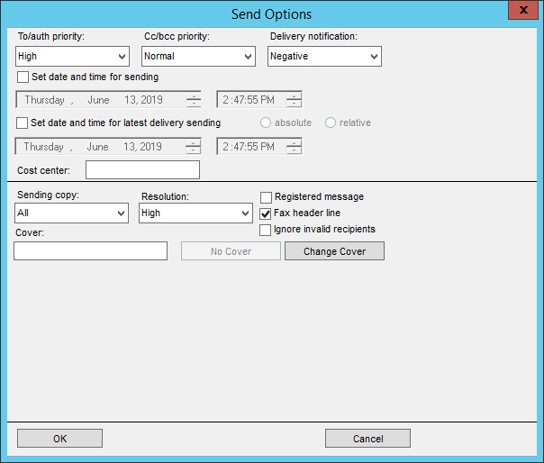 The Send Options area is the box at the top right of the message window (below the Address Book drop-down list). Click anywhere in this area to call up the Send Options window shown below:
