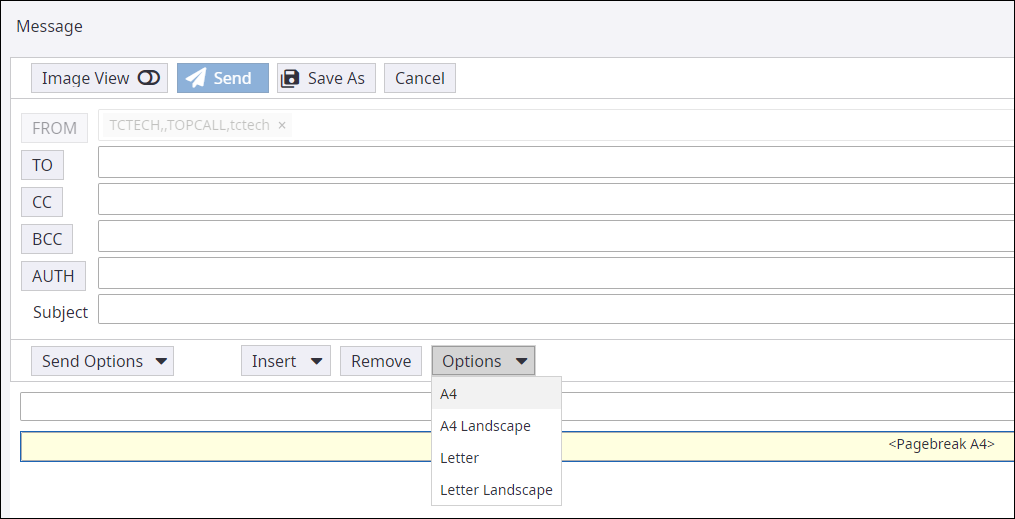 Use this option to insert a page break between attachments, text boxes, or signature marks in a message.
