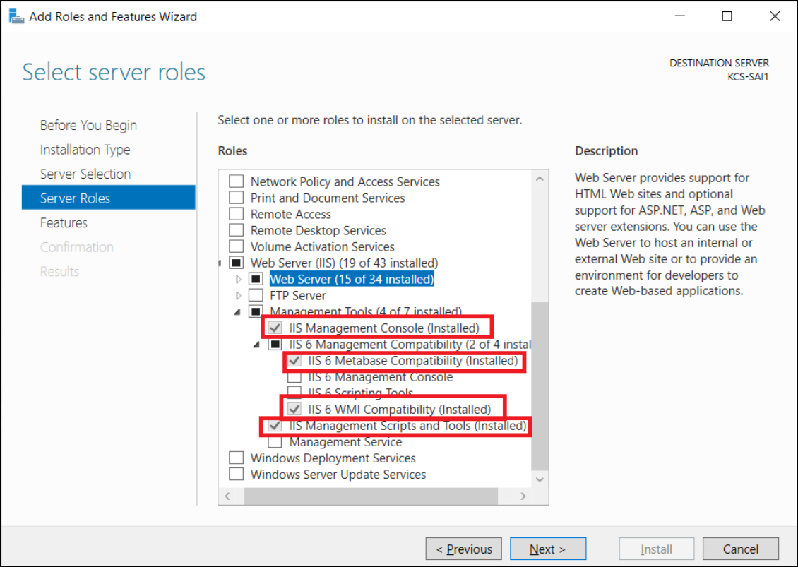Perform the following steps to enable the IIS Web Server Roles on Windows Server 2019.
