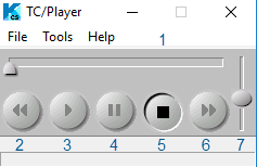 - Stop: Use this button to stop the playback and go to start, or close the player if specified in Preferences.