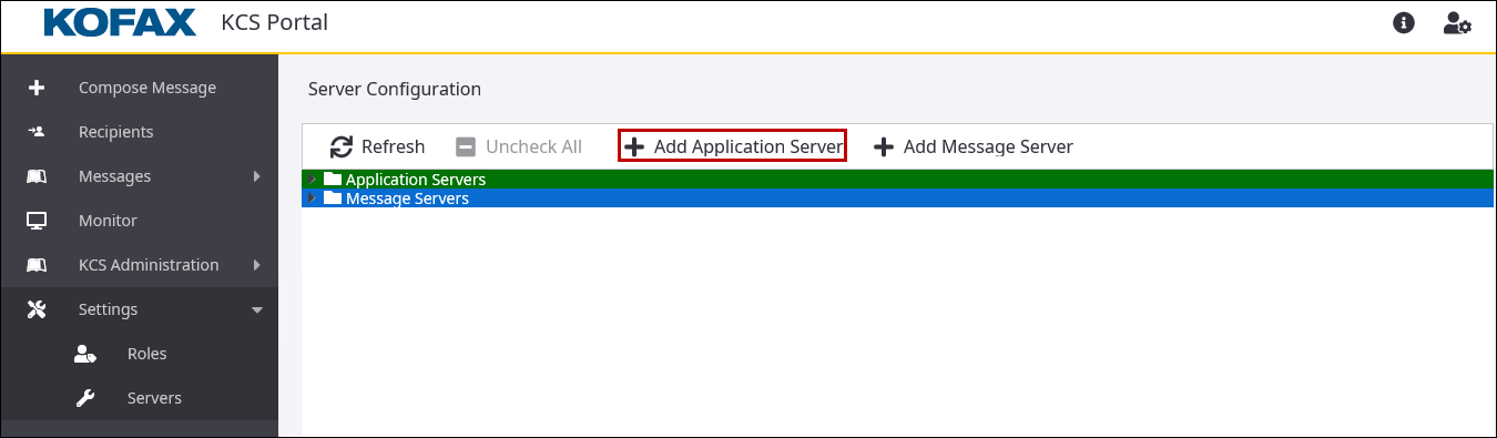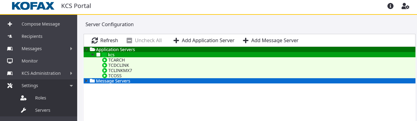 Until the server is added successfully, the status of the newly added server appears as "Initializing". Click Refresh to update the status. If the server is added, it is listed in the Application Servers. Expand a server to view the list of components in it.