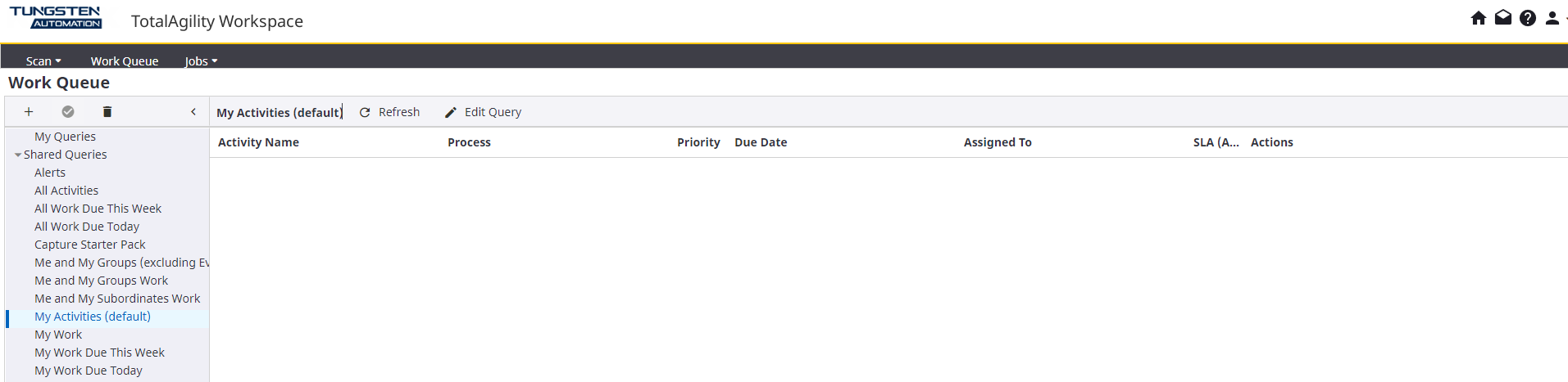 To view Capture Starter Pack activities, on the Work Queue page in Workspace, under Shared Queries, select Capture Starter Pack.