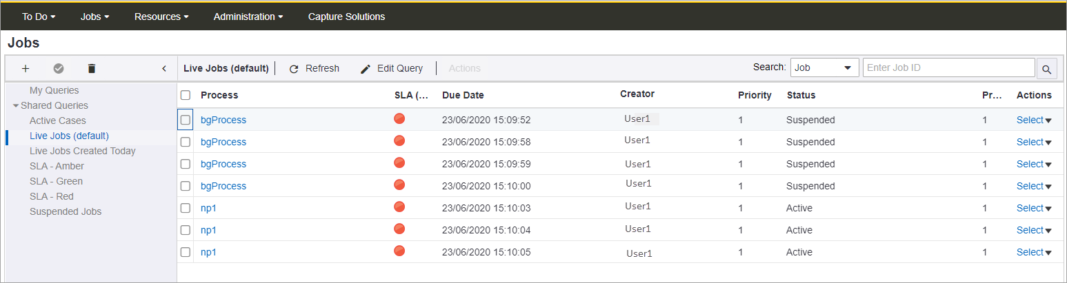 Use a Job list control to allow a user to view, search and perform operations on jobs in TotalAgility.