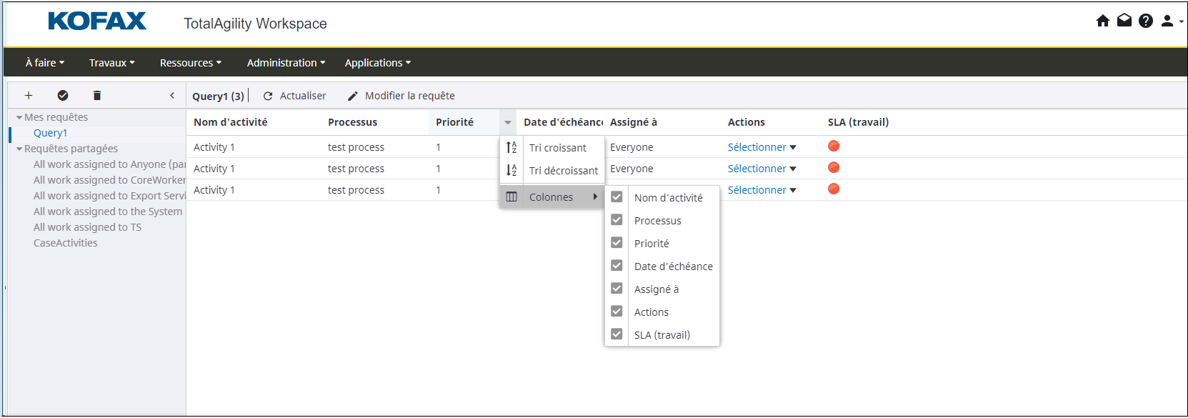 Vous pouvez trier les colonnes par ordre croissant ou décroissant et masquer ou afficher des colonnes.