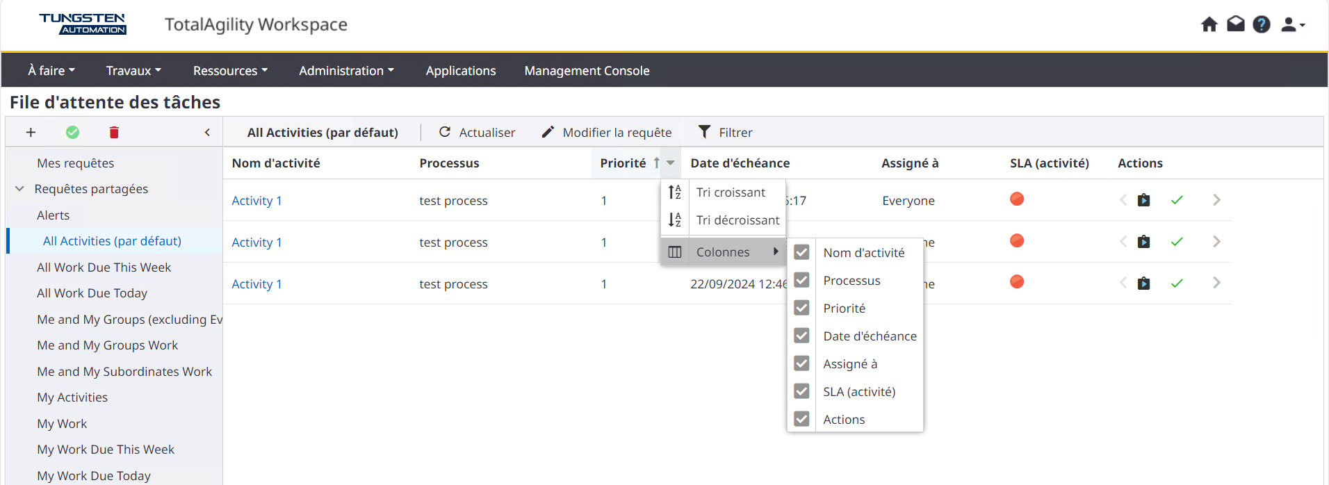 Vous pouvez trier les colonnes par ordre croissant ou décroissant et masquer ou afficher des colonnes.