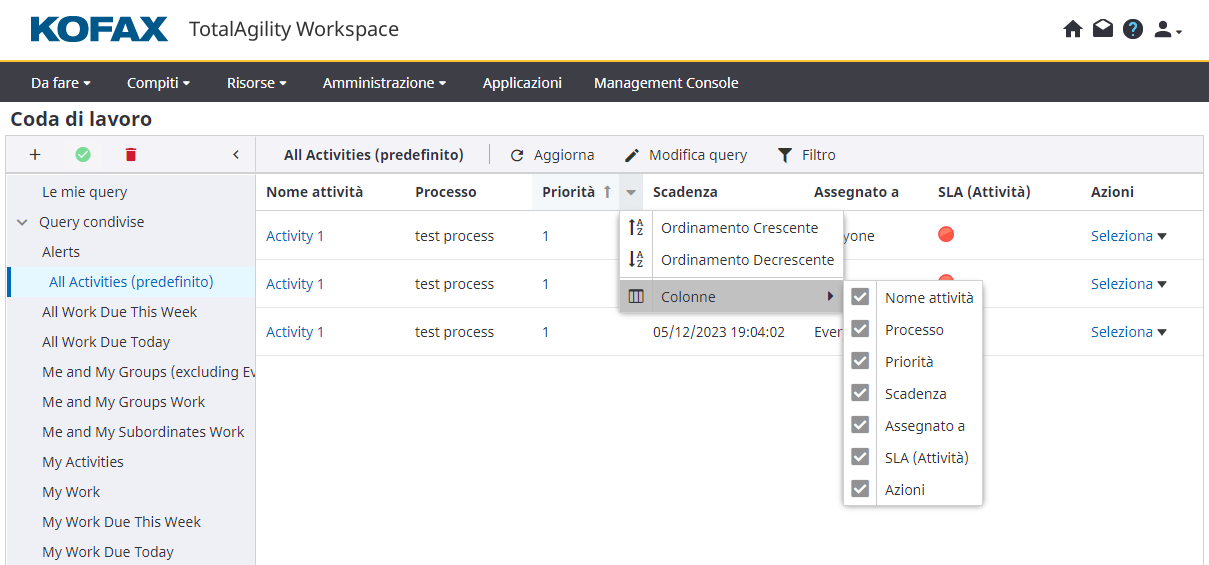Per modalità predefinita vengono visualizzate tutte le colonne.