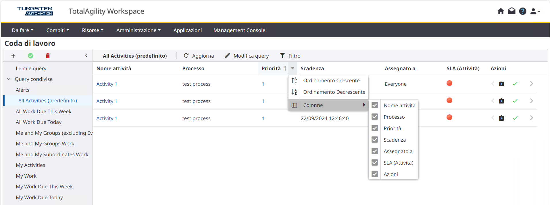 Per modalità predefinita vengono visualizzate tutte le colonne.