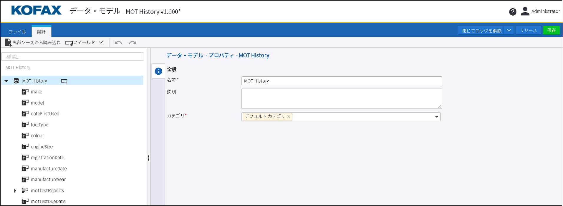 - モデルの名前を「MOT History」(MOT 履歴) に変更します。