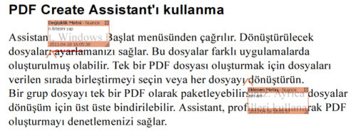 Başlıktaki bir sözcük silinmek üzere işaretlenmiştir. Sonraki satırda metin eklenmiş ve değiştirilmiştir. İşaretleme rengini ve diğer özellikleri değiştirmek için, işareti sağ tıklatın ve Özellikler'i seçin. Metin kutularını yeniden boyutlandırabilir ve kapatabilirsiniz. Bu durumda, önerilen yeni metni açılan ekranda görmek için imleci bir değişikliğin üzerinde bekletin:
