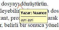 Bu, metnin silinmesini, eklenmesini veya değiştirilmesini önerdiğiniz yerleri belirtmenize olanak veren çok amaçlı bir araçtır.