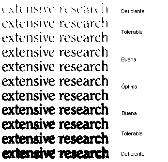 El brillo tiene un papel importante en la precisión del OCR. Tras cargar una imagen, revise su aspecto. Si los caracteres son gruesos y se superponen, aclare el brillo. Si los caracteres son finos y difusos, oscurezca el brillo. Use la herramienta Brillo de OCR para optimizar la imagen. El diagrama ilustra un brillo óptimo.