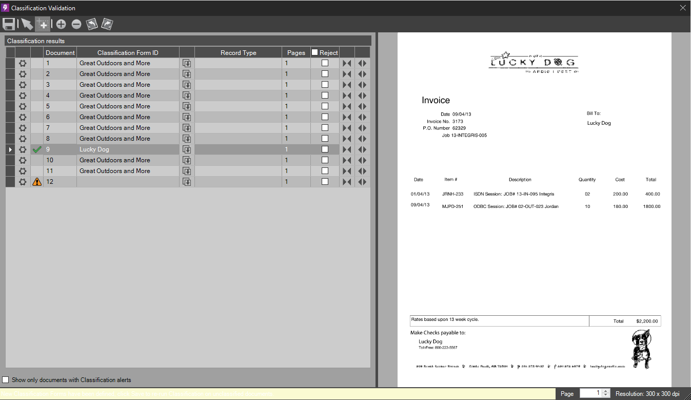 If users would like to re-run Classification on any other documents that failed to be classified, click the Save Classification Corrections toolbar button. This function reprocesses those unclassified documents using any new forms that were defined. If there are still unclassified documents, the Classification Validation dialog box reopens so that additional forms can be defined.