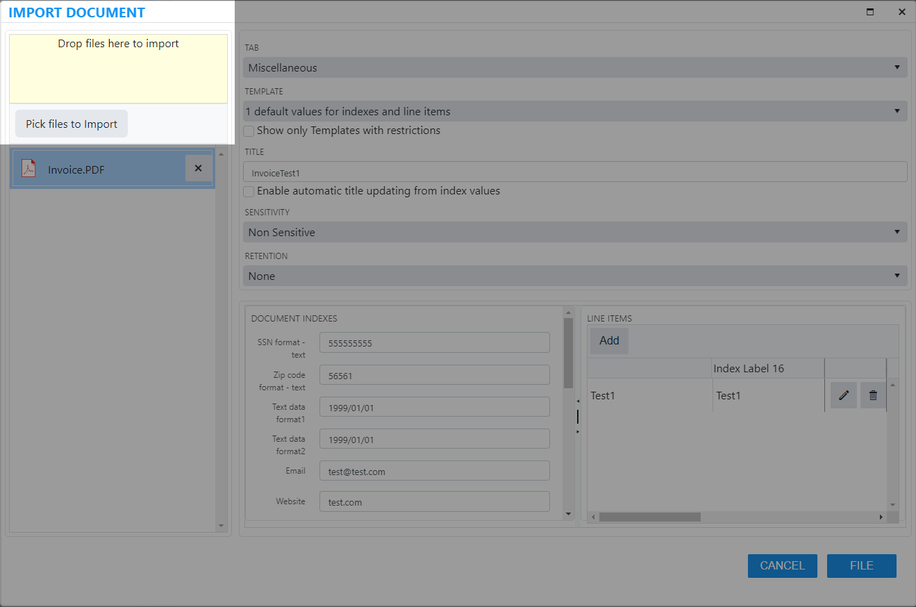 This import window can be clicked within the Drop files here to import area to open a File Explorer window, allowing you to browse to the files you wish to upload. Alternatively, you can click the Pick Files to Import button to open the same File Explorer window. As an additional alternative, you can drag importable content right from a File Explorer window into this screen's Drop files here to import box to initiate an import of the file.