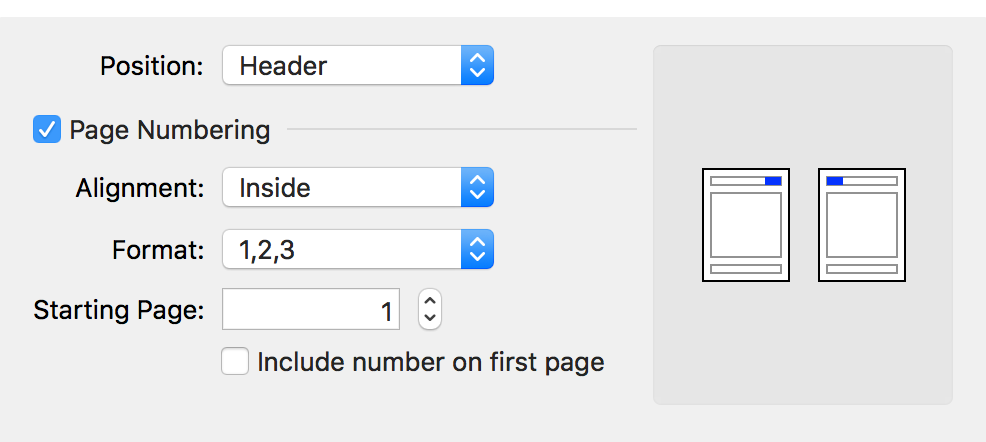 Cochez la case Numérotation des pages pour ajouter des numéros de page. Sinon, seul un en-tête ou un pied de page peut être appliqué.